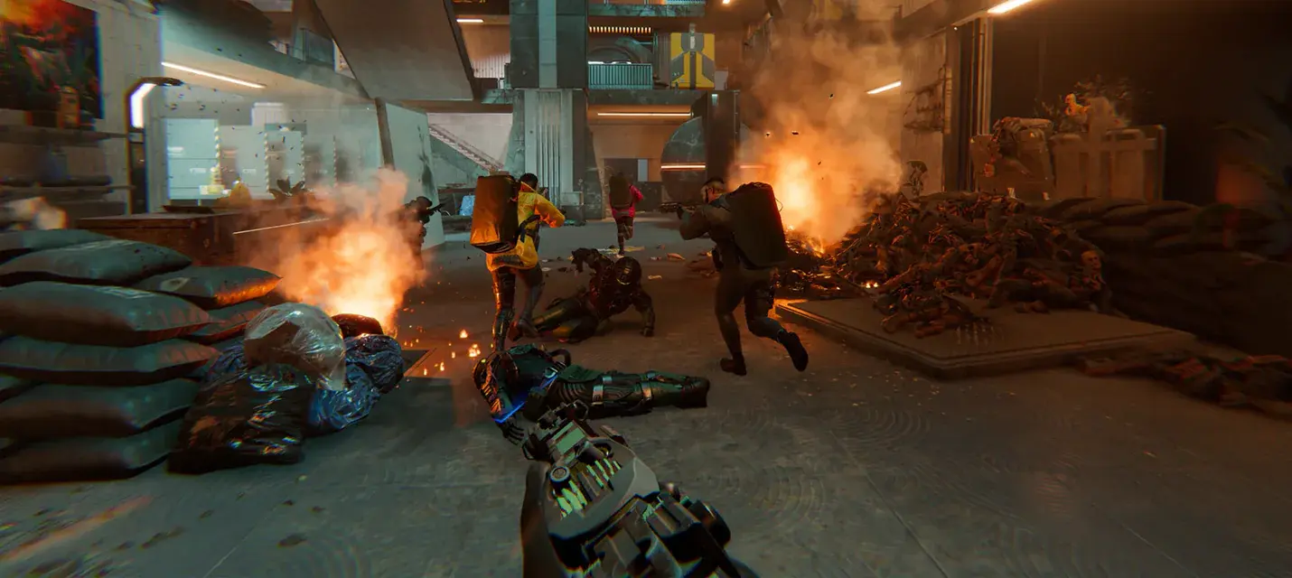 Den of Wolves была анонсирована на The Game Awards 2023 и позиционируется как более амбициозный проект по сравнению с предыдущей игрой студии — GTFO. Новый проект представляет собой кооперативный шутер в киберпанковском сеттинге, где корпорации контролируют мир. Дата релиза пока не объявлена.