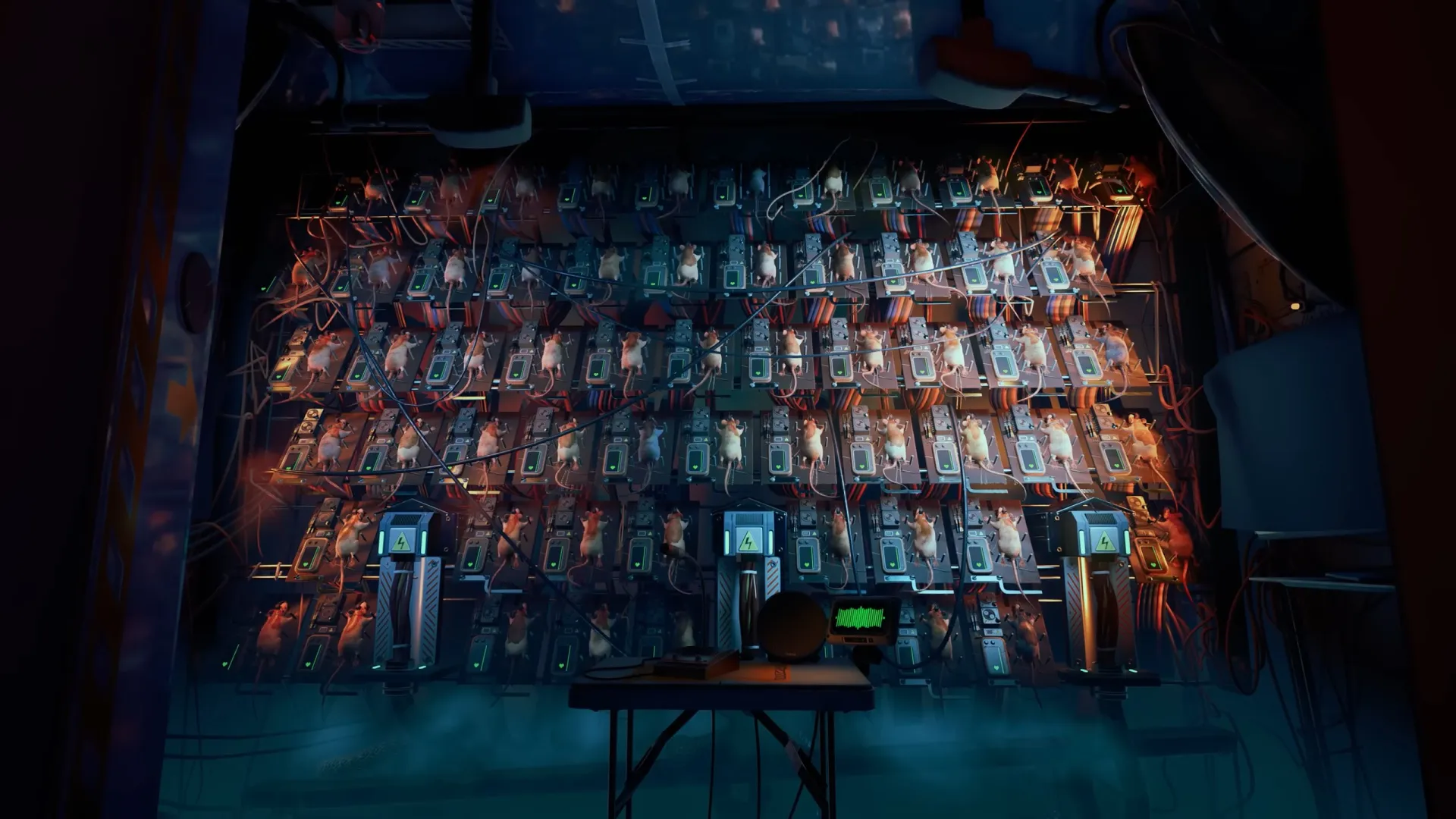 Один из примеров: невролог по имени доктор Кромби перенёс своё сознание в устройство, работающее на сети грызунов, чтобы доказать, что сознание может существовать только в одном месте одновременно. Полубессознательное человеческое тело просит о помощи, а крысиная сеть требует его игнорировать.