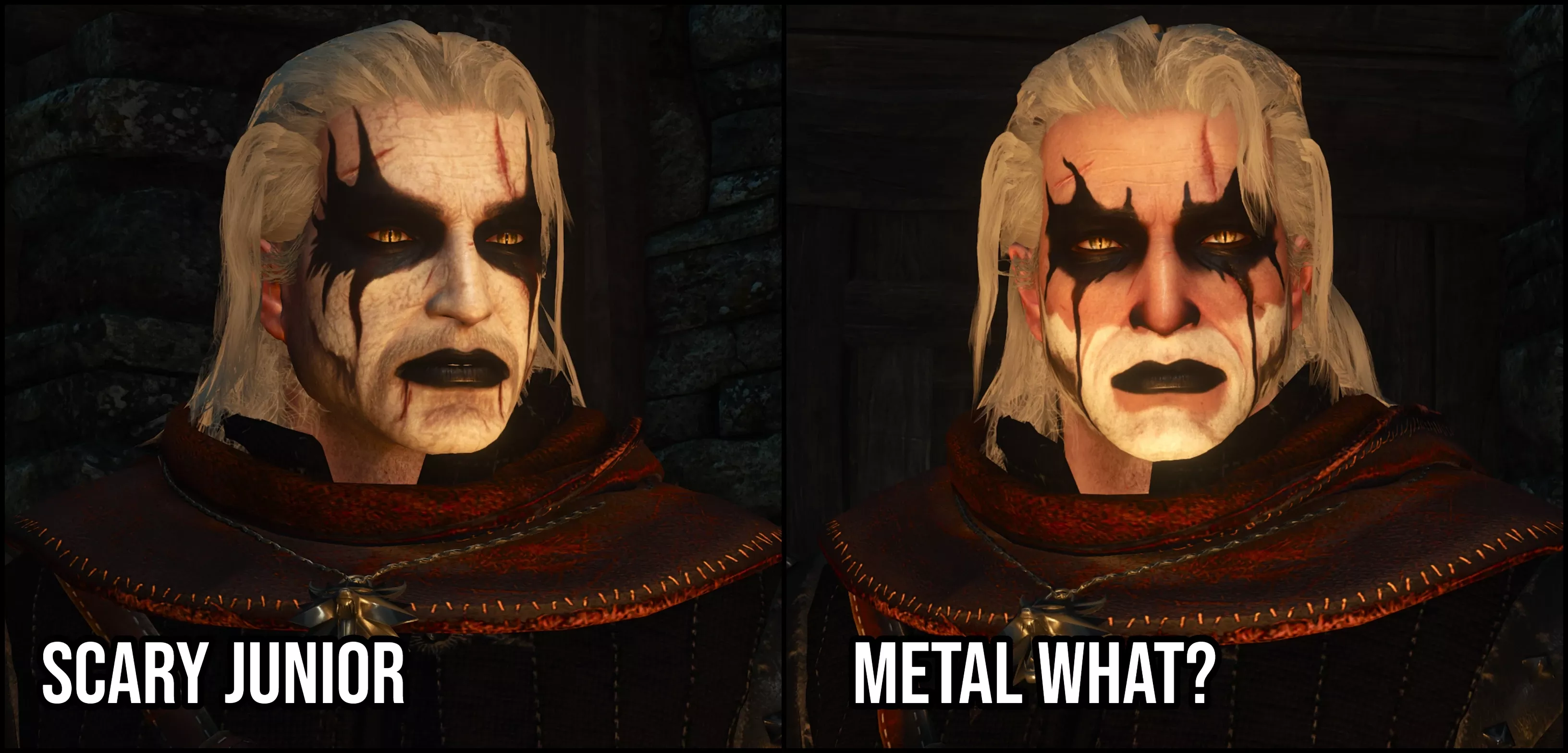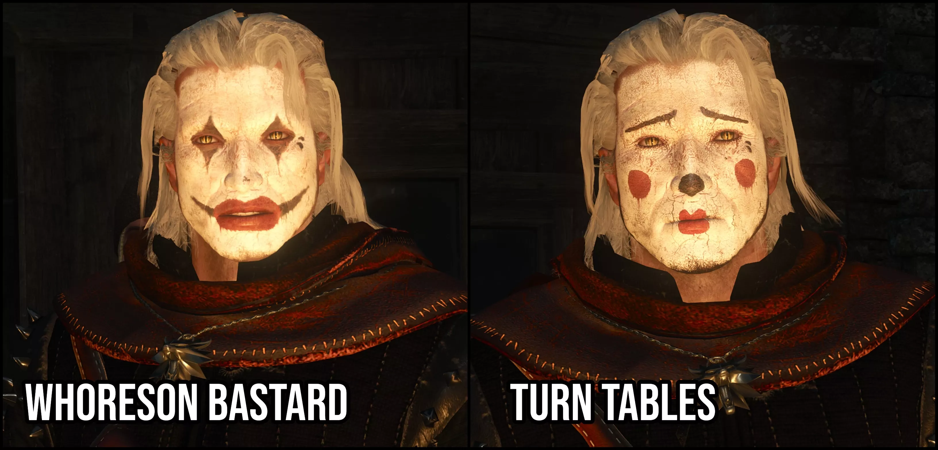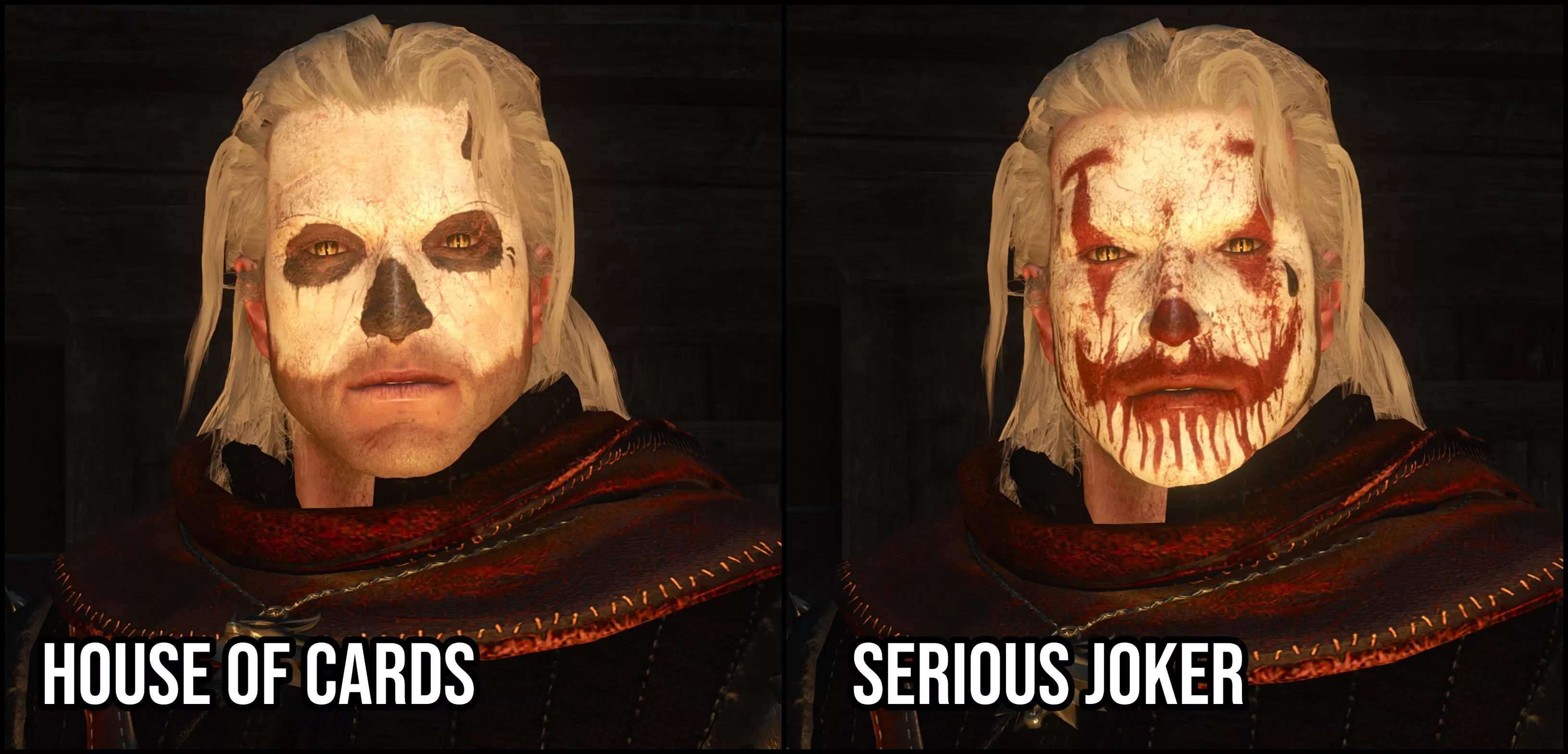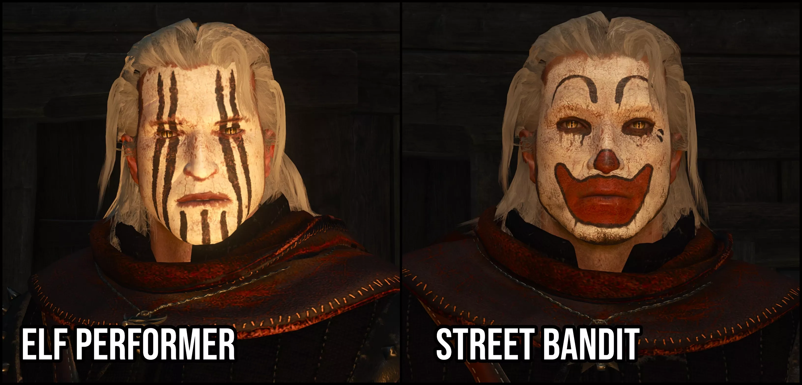 Геральт может посещать специальных мастеров, где за деньги открываются опции грима, лицевой росписи и татуировок. На старте доступны 22 варианта: 8 татуировок и 14 видов макияжа. После прохождения небольшого встроенного мини-квеста открываются ещё 16 скрытых опций — 10 новых вариантов лицевой росписи и 6 дополнительных тату.