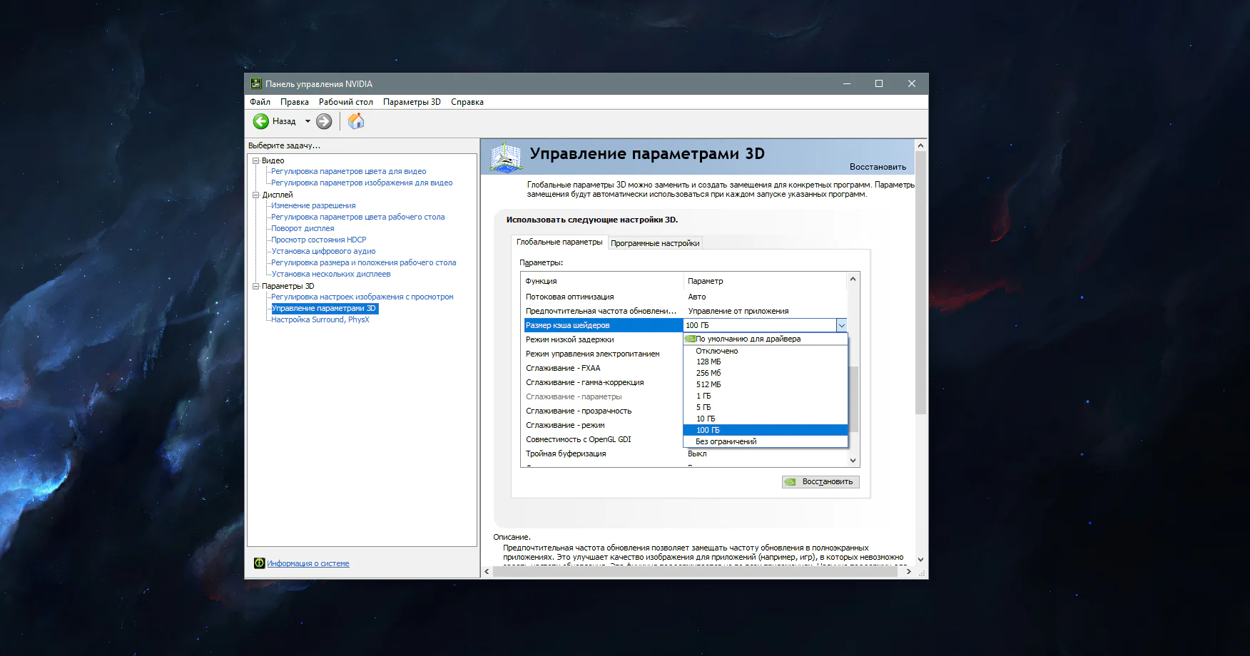 Как выяснил журналист PCGamer Энди Эдсер, изменение объема кэша шейдеров в «Nvidia Control Panel > Manage 3D Settings > Shader Cache Size» до 100 гигабайт устраняет большую часть «микрофризов».