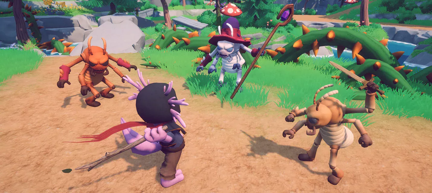 Главным героем игры выступает харизматичный Аксолотль, который отправляется в подземелья ради сражений и новых предметов для дома.