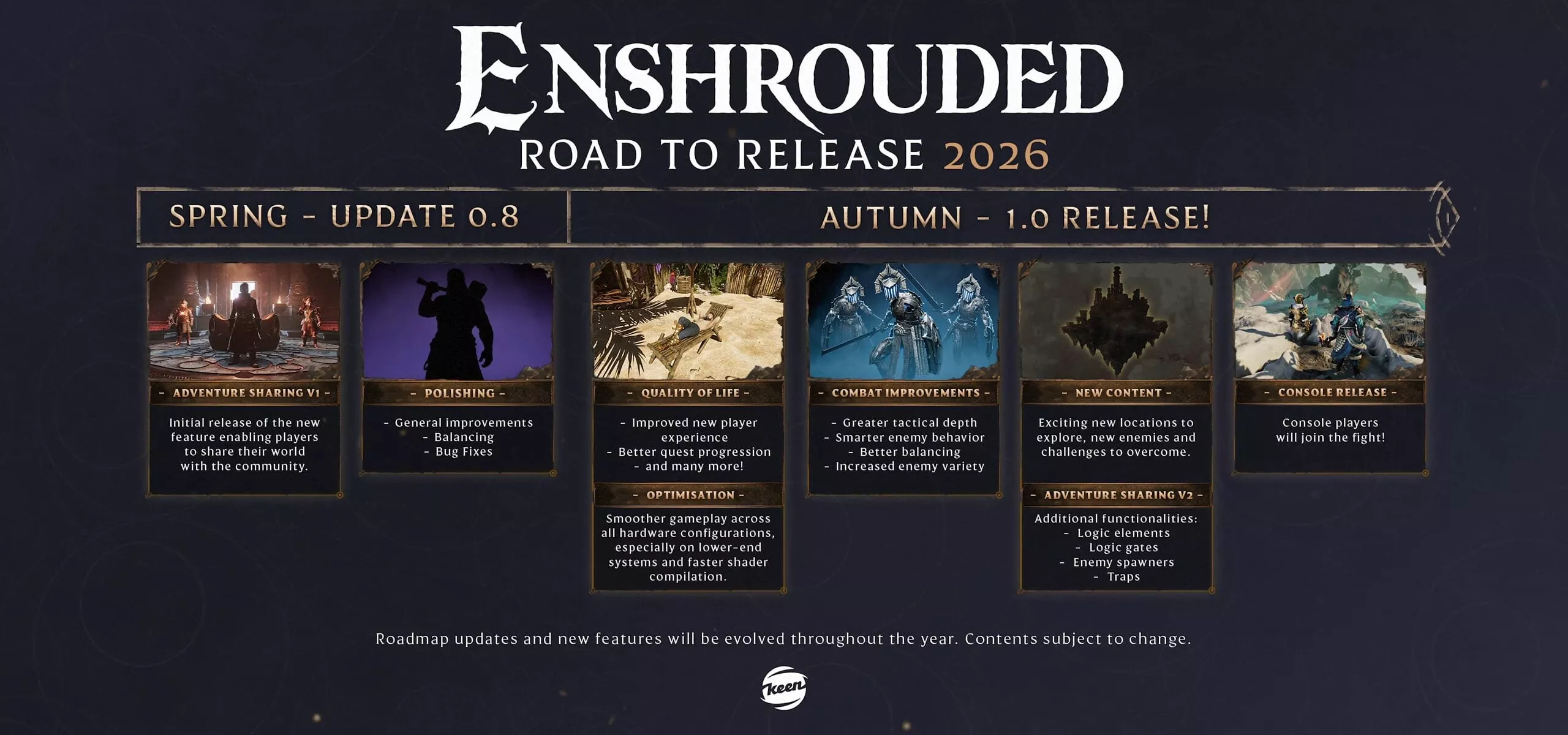 Студия Keen Games объявила, что Enshrouded покинет ранний доступ и полноценно выйдет осенью 2026 года. Игра появится не только на PC (Steam), где она находится в раннем доступе с января 2024-го, но и на PlayStation 5 и Xbox Series.