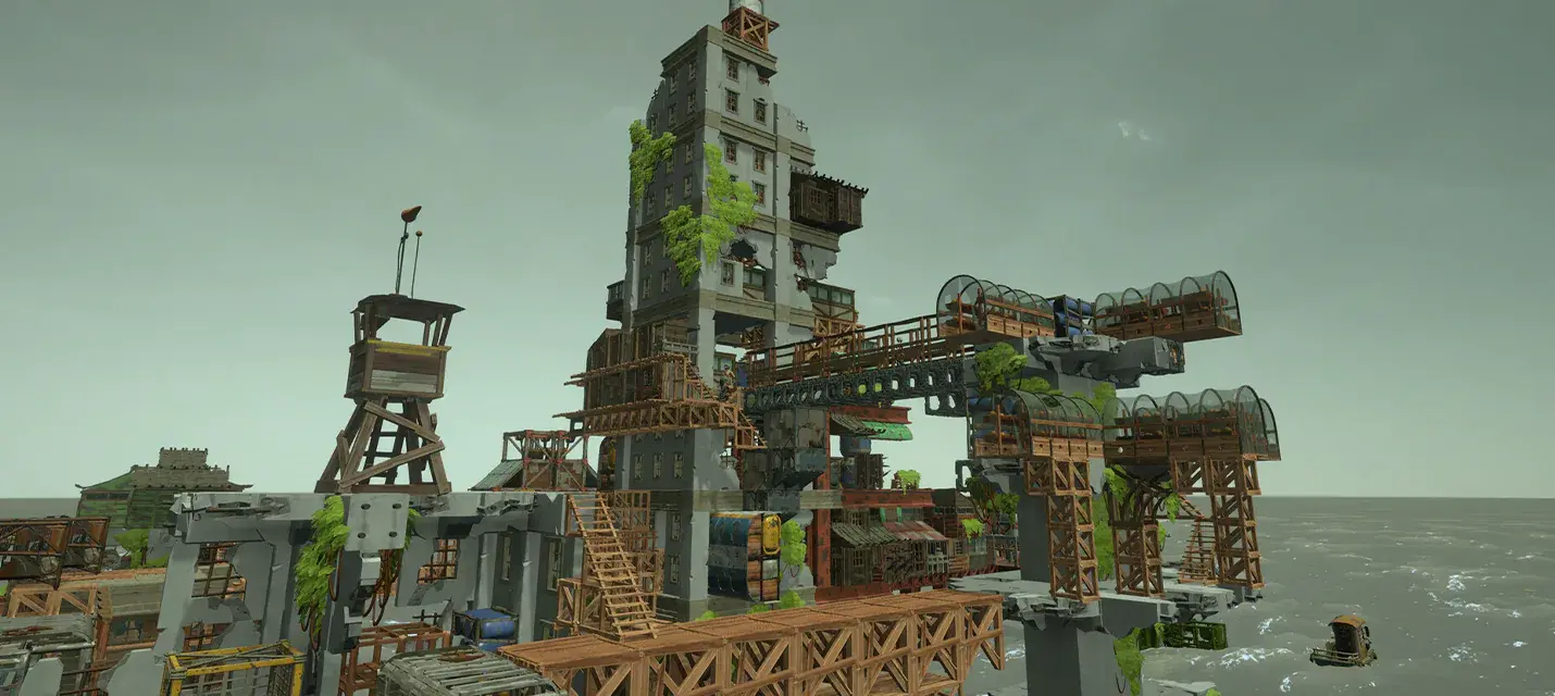 Постапокалиптический сити-билдер с разрушаемыми зданиями предложит строить вертикальный город посреди бескрайнего океана.