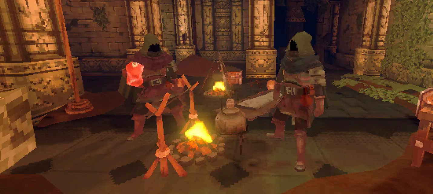 Во время вылазок важно собирать ресурсы, решать головоломки и внимательно изучать окружение. После возвращения в лагерь добытые материалы можно использовать для крафта инструментов и приготовления пищи, которая напрямую влияет на характеристики персонажа.