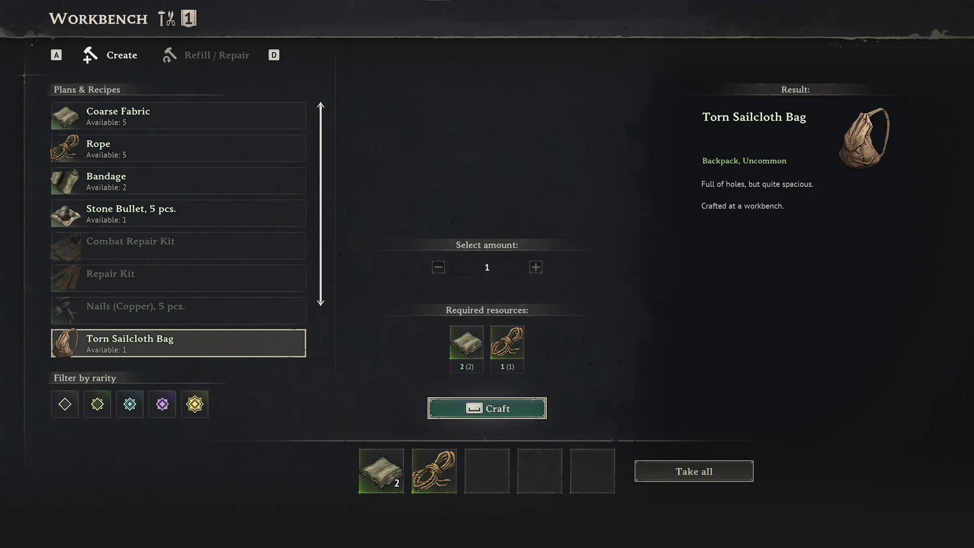 - Рваный мешок из парусины — базовое улучшение, даёт немного дополнительного места