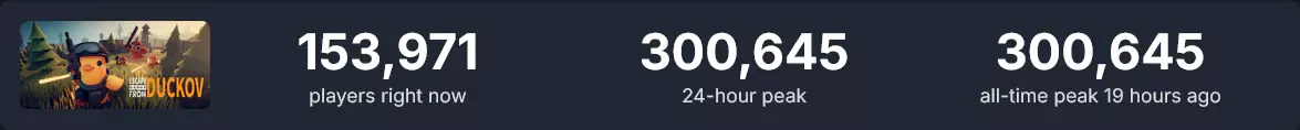 26 октября Escape From Duckov превысила отметку в 300 000 одновременных игроков в Steam, согласно данным SteamDB. Это произошло всего через десять дней после релиза. Для студии Team Soda это абсолютный рекорд: предыдущая игра разработчиков едва превысила отметку в 1600 игроков.